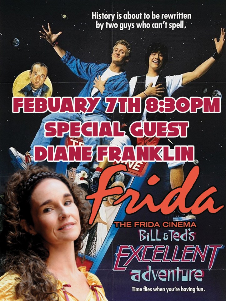 Grab your history books and cruise on over to The Frida Cinema as Moviebusters are back to present a most triumphant screening of the 1989 cult classic Bill & Ted’s Excellent Adventure! And be sure to stay after the screening for an in-person Q&A with special guest Diane Franklin (Better Off Dead, Dallas, Matlock), who played the role of Princess Joanna of England.